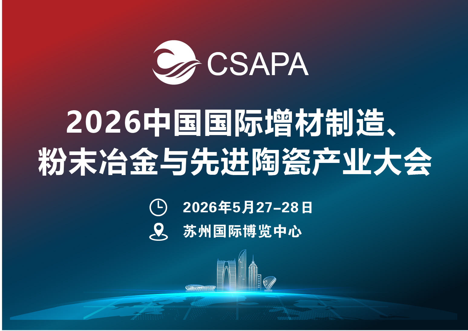 “CSAPA 2026中国(苏州)国际增材制造、粉末冶金与先进陶瓷展览会”将于2026年5月27-29日在苏州国际博览中心同期隆重举办!本届展会致力于为全球增材智造、粉末冶金、先进陶瓷行业带来一场技术与创新的顶级盛会,全力组织增材制造、粉末冶金制品及原/辅材料、硬质合金制品及原/辅材料、先进陶瓷制品及原/辅材料、生产制造/检测设备等领域近500家行业品牌参展。展会将紧紧围绕增材制造、粉末冶金与先进陶瓷行业高质量发展的要求,聚焦新技术、新产品及新应用。重点邀约新材料、新能源汽车、电子电气、医疗器械、航空航天、国防军工、五金模具、机械制造等领域近20,000名专业卖家莅临洽谈,构筑增材制造、粉末冶金与先进陶瓷行业一站式采购交流平台。